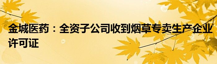 以上就是【金城医药:全资子公司收到烟草专卖生产企业许可证】相关内容。