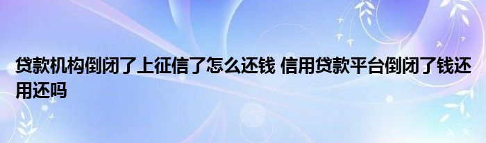导读 大家好,小理来为大家解答以上的问题。贷款机构倒闭了上征信了怎么还钱,信用贷款平台倒闭了钱还用还吗这个很多人还不知道,现在让我们一起来
