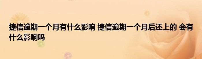 导读 大家好,小理来为大家解答以上的问题。捷信逾期一个月有什么影响,捷信逾期一个月后还上的,会有什么影响吗这个很多人还不知道,现在让我们一