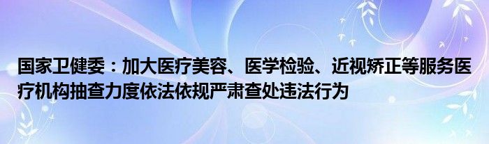 以上就是【国家卫健委:加大医疗美容、医学检验、近视矫正等服务医疗机构抽查力度依法依规严肃查处违法行为】相关内容。