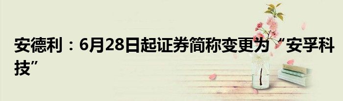 以上就是【安德利:6月28日起证券简称变更为“安孚科技”】相关内容。