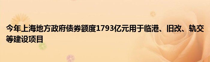 以上就是【今年上海地方政府债券额度1793亿元用于临港、旧改、轨交等建设项目】相关内容。