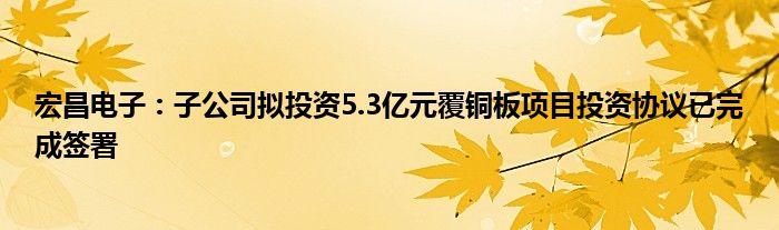 以上就是【宏昌电子:子公司拟投资5.3亿元覆铜板项目投资协议已完成签署】相关内容。