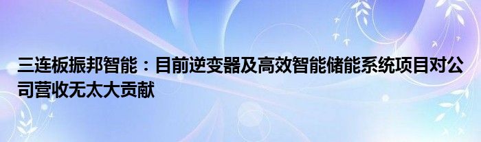 以上就是【三连板振邦智能:目前逆变器及高效智能储能系统项目对公司营收无太大贡献】相关内容。