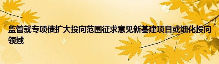 以上就是【监管就专项债扩大投向范围征求意见新基建项目或细化投向领域】相关内容。