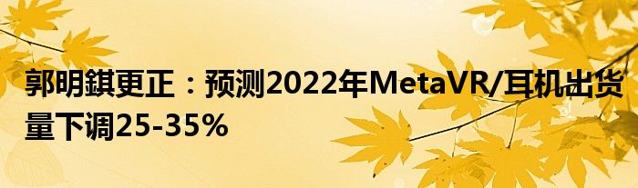 以上就是【郭明錤更正:预测2022年MetaVR/耳机出货量下调25-35%】相关内容。
