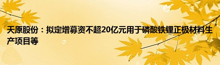以上就是【天原股份:拟定增募资不超20亿元用于磷酸铁锂正极材料生产项目等】相关内容。
