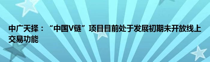 以上就是【中广天择:“中国V链”项目目前处于发展初期未开放线上交易功能】相关内容。