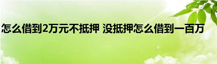 导读 大家好,小理来为大家解答以上的问题。怎么借到2万元不抵押,没抵押怎么借到一百万这个很多人还不知道,现在让我们一起来看看吧!
