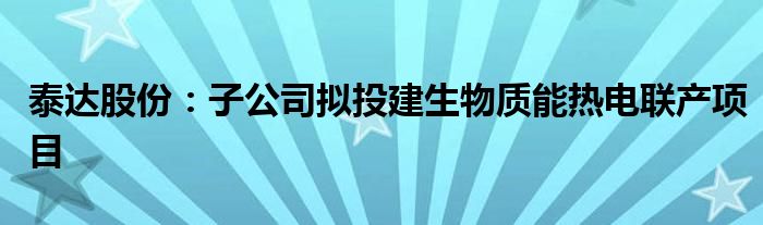 以上就是【泰达股份:子公司拟投建生物质能热电联产项目】相关内容。