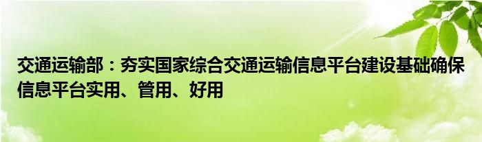以上就是【交通运输部:夯实国家综合交通运输信息平台建设基础确保信息平台实用、管用、好用】相关内容。