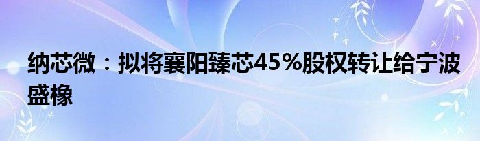 以上就是【纳芯微:拟将襄阳臻芯45%股权转让给宁波盛橡】相关内容。