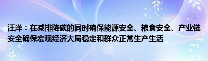 以上就是【汪洋:在减排降碳的同时确保能源安全、粮食安全、产业链安全确保宏观经济大局稳定和群众正常生产生活】相关内容。