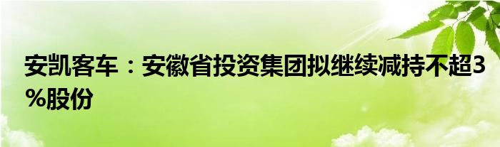以上就是【安凯客车:安徽省投资集团拟继续减持不超3%股份】相关内容。