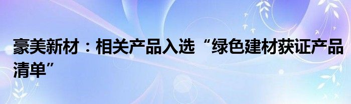 以上就是【豪美新材:相关产品入选“绿色建材获证产品清单”】相关内容。