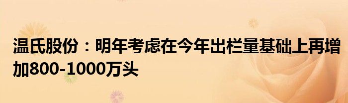 以上就是【温氏股份:明年考虑在今年出栏量基础上再增加800-1000万头】相关内容。