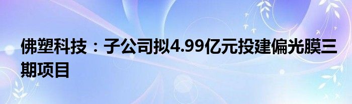 以上就是【佛塑科技:子公司拟4.99亿元投建偏光膜三期项目】相关内容。