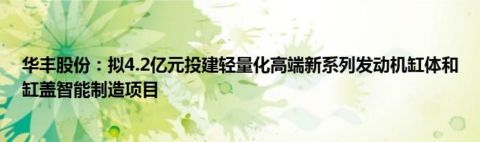 以上就是【华丰股份:拟4.2亿元投建轻量化高端新系列发动机缸体和缸盖智能制造项目】相关内容。