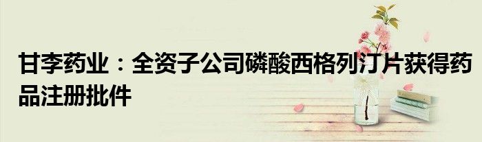 以上就是【甘李药业:全资子公司磷酸西格列汀片获得药品注册批件】相关内容。