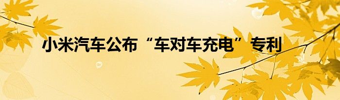 以上就是【小米汽车公布“车对车充电”专利】相关内容。