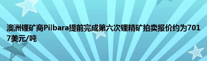 以上就是【澳洲锂矿商Pilbara提前完成第六次锂精矿拍卖报价约为7017美元/吨】相关内容。