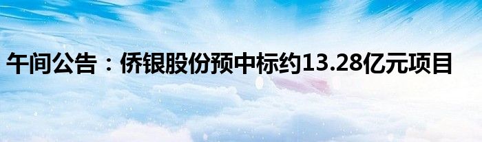 以上就是【午间公告:侨银股份预中标约13.28亿元项目】相关内容。