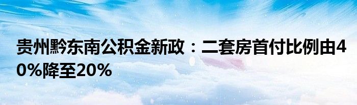 导读 6月23日电,贵州省黔东南州住房公积金管理中心日前出台新政,已结清首套住房公积金贷款缴存人,申请公积金贷款购买二套房的,最低首付款比