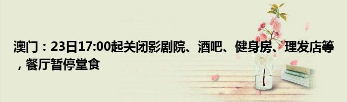 以上就是【澳门:23日17:00起关闭影剧院、酒吧、健身房、理发店等,餐厅暂停堂食】相关内容。