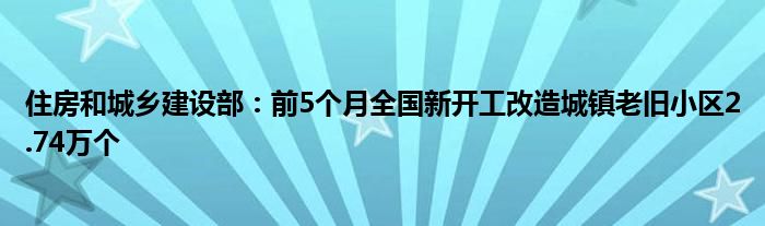 以上就是【住房和城乡建设部:前5个月全国新开工改造城镇老旧小区2.74万个】相关内容。