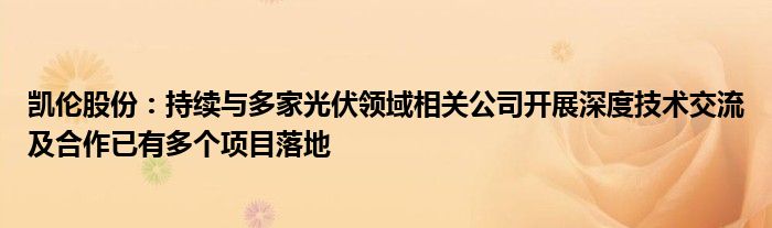 以上就是【凯伦股份:持续与多家光伏领域相关公司开展深度技术交流及合作已有多个项目落地】相关内容。