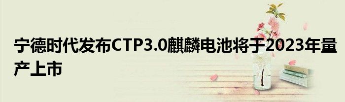以上就是【宁德时代发布CTP3.0麒麟电池将于2023年量产上市】相关内容。