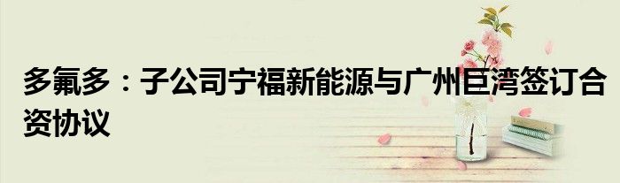 以上就是【多氟多:子公司宁福新能源与广州巨湾签订合资协议】相关内容。