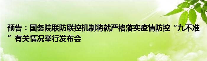 以上就是【预告:国务院联防联控机制将就严格落实疫情防控“九不准”有关情况举行发布会】相关内容。