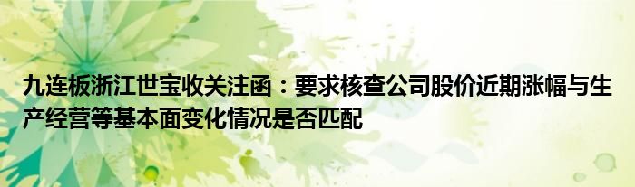 以上就是【九连板浙江世宝收关注函:要求核查公司股价近期涨幅与生产经营等基本面变化情况是否匹配】相关内容。