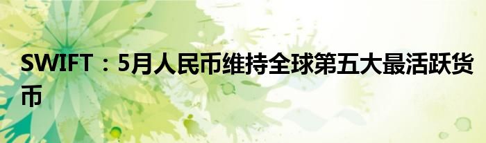 以上就是【SWIFT:5月人民币维持全球第五大最活跃货币】相关内容。