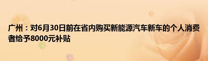 以上就是【广州:对6月30日前在省内购买新能源汽车新车的个人消费者给予8000元补贴】相关内容。