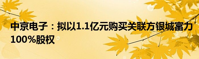 以上就是【中京电子:拟以1.1亿元购买关联方银城富力100%股权】相关内容。