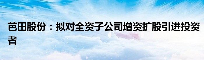 以上就是【芭田股份:拟对全资子公司增资扩股引进投资者】相关内容。