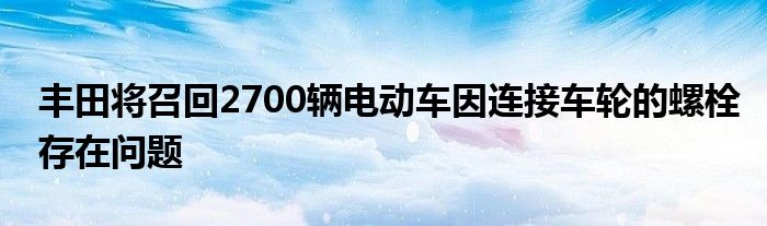 以上就是【丰田将召回2700辆电动车因连接车轮的螺栓存在问题】相关内容。