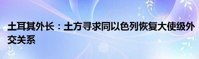 以上就是【土耳其外长:土方寻求同以色列恢复大使级外交关系】相关内容。