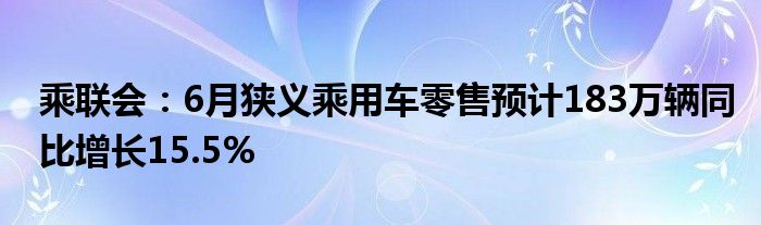 以上就是【乘联会:6月狭义乘用车零售预计183万辆同比增长15.5%】相关内容。