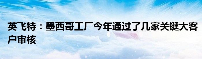 以上就是【英飞特:墨西哥工厂今年通过了几家关键大客户审核】相关内容。