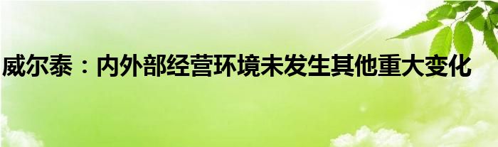 以上就是【威尔泰:内外部经营环境未发生其他重大变化】相关内容。