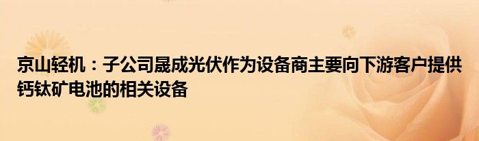 以上就是【京山轻机:子公司晟成光伏作为设备商主要向下游客户提供钙钛矿电池的相关设备】相关内容。