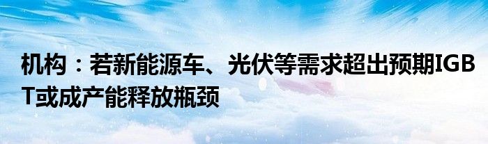 以上就是【机构:若新能源车、光伏等需求超出预期IGBT或成产能释放瓶颈】相关内容。