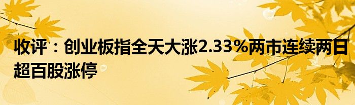 以上就是【收评:创业板指全天大涨2.33%两市连续两日超百股涨停】相关内容。