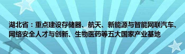 以上就是【湖北省:重点建设存储器、航天、新能源与智能网联汽车、网络安全人才与创新、生物医药等五大国家产业基地】相关内容。