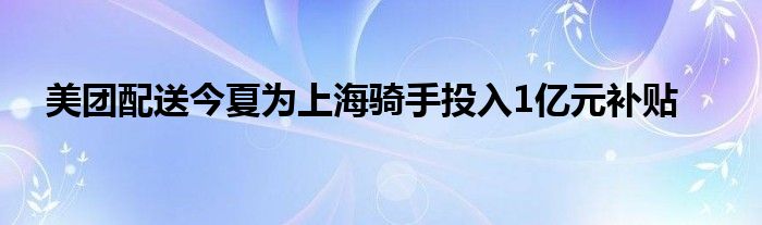 以上就是【美团配送今夏为上海骑手投入1亿元补贴】相关内容。