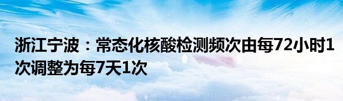 以上就是【浙江宁波:常态化核酸检测频次由每72小时1次调整为每7天1次】相关内容。