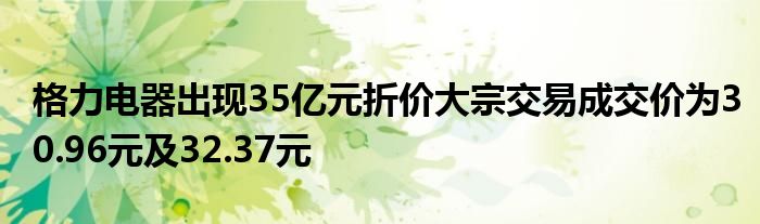 以上就是【格力电器出现35亿元折价大宗交易成交价为30.96元及32.37元】相关内容。